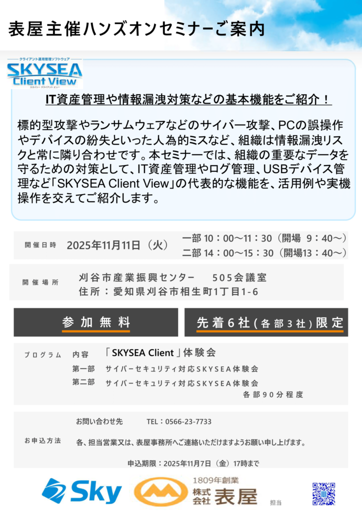≪2025年11月11日(火)開催≫第2回『SKYSEA Client View』体験セミナー開催します!【Sky(株)様】